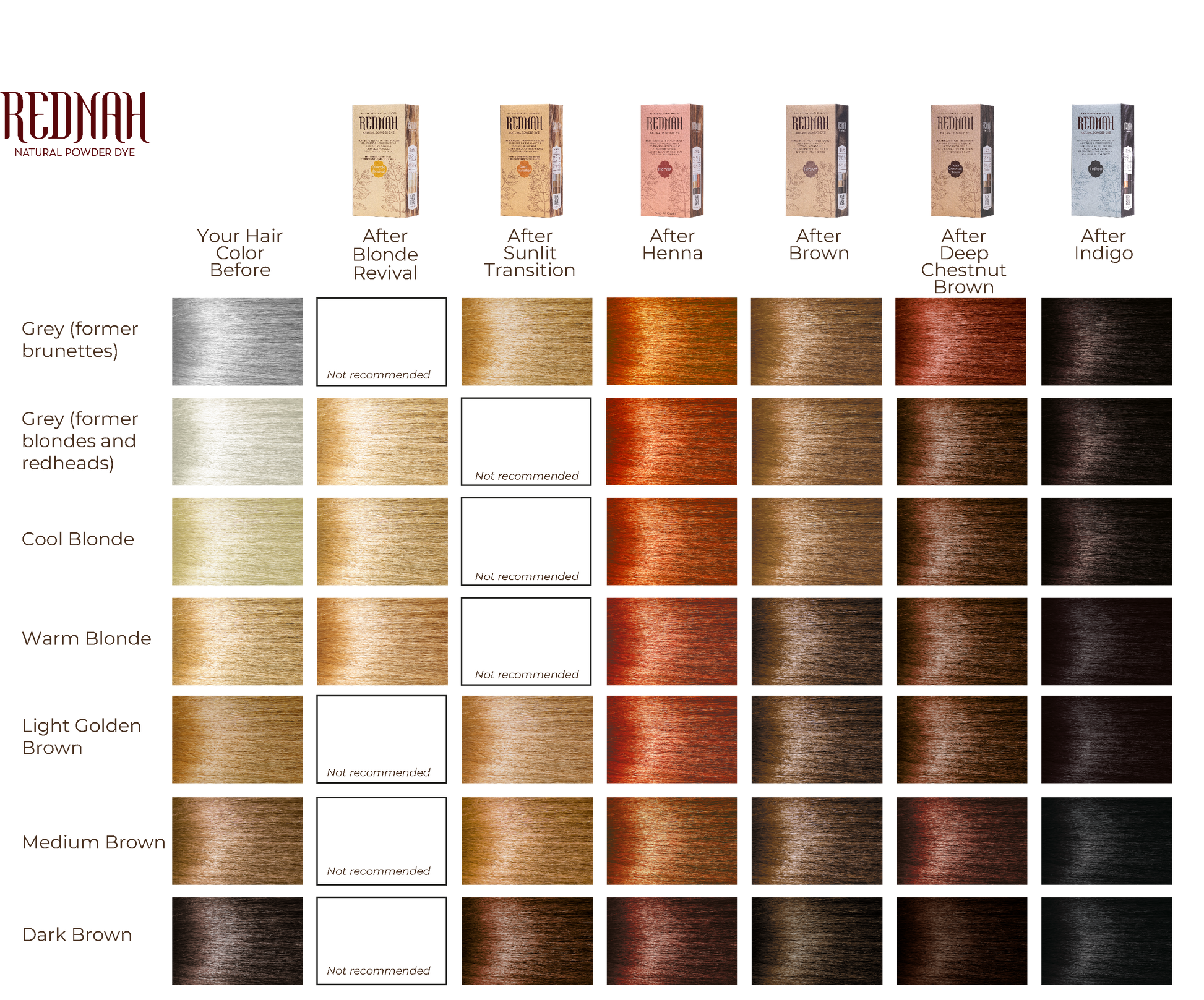 - Inwerktijd: Henna, Brown, Deep Chestnut Brown: 1–3 uur (let op, 1 uur is al voldoende, hoe langer des te meer rode tinten).